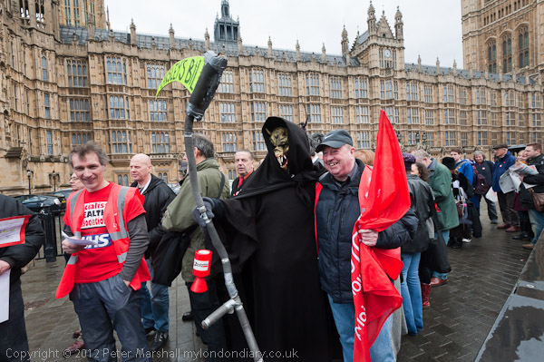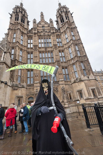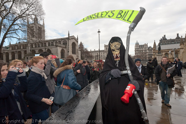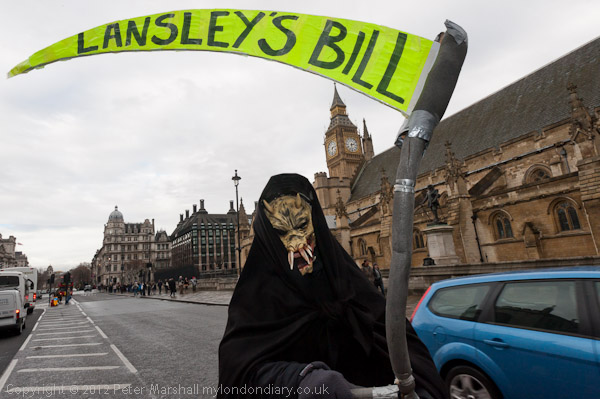 The Grim Reaper pays a visit, his scythe labelled 'Lansley's Bill'
