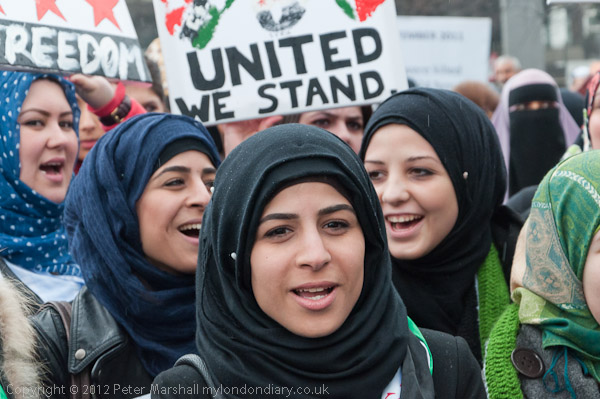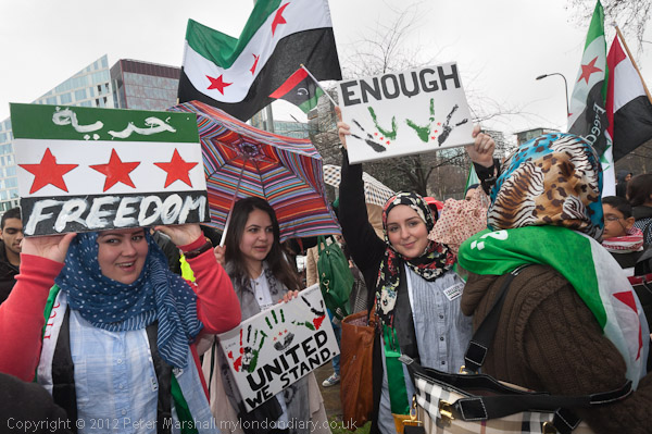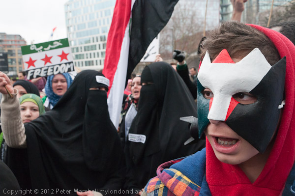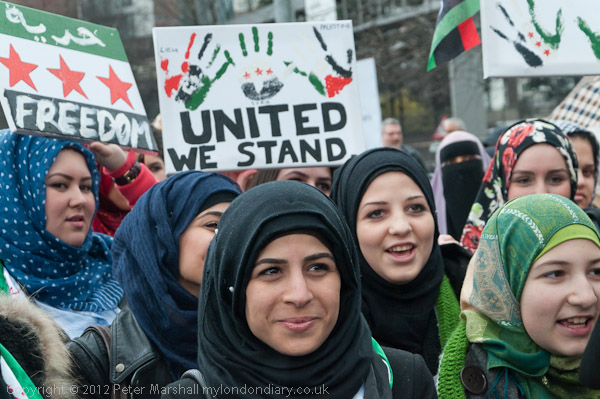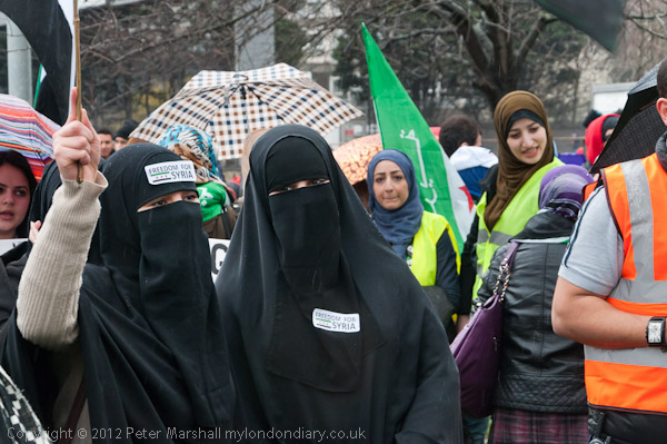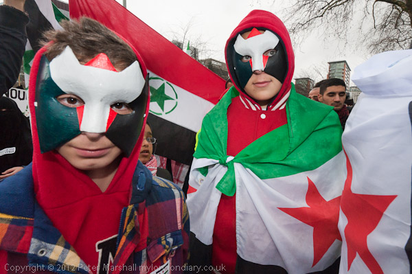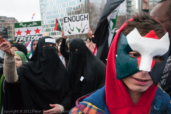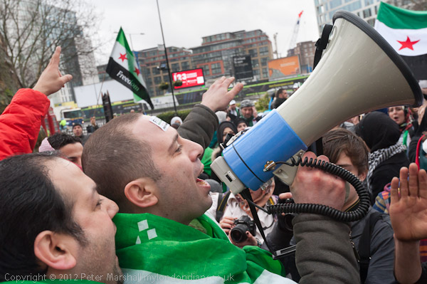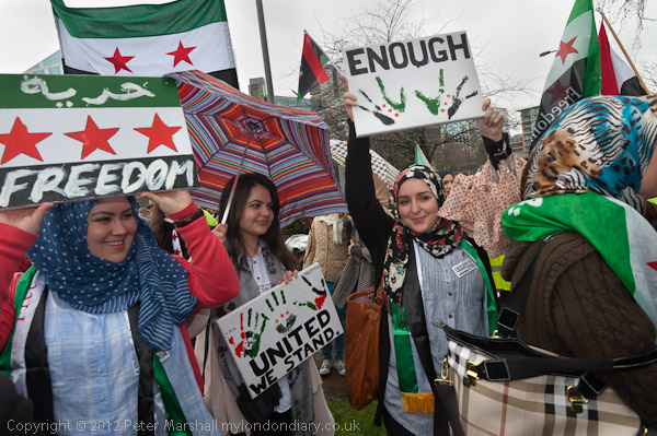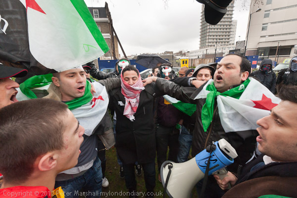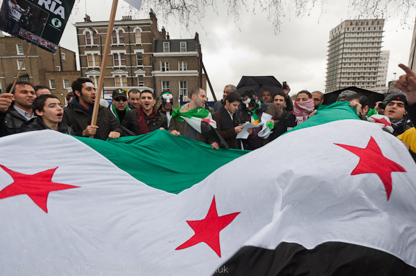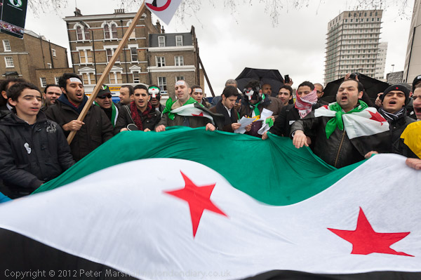 The Free Syrians met up at Paddington Green for their march to the Syrian Embassy