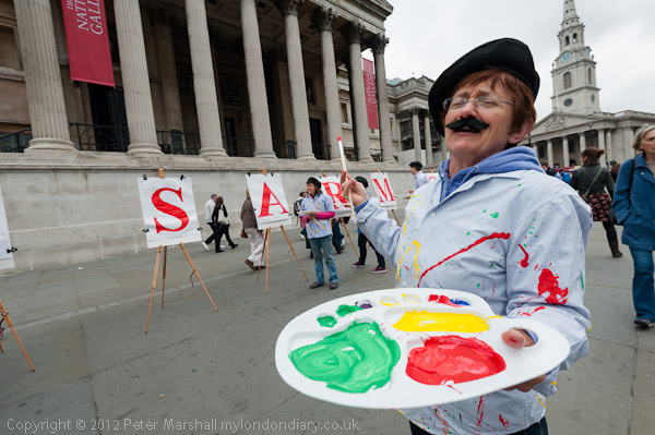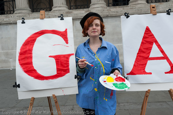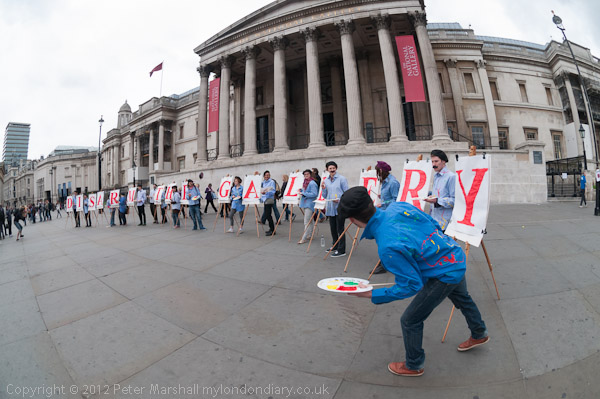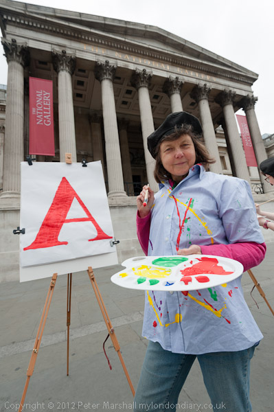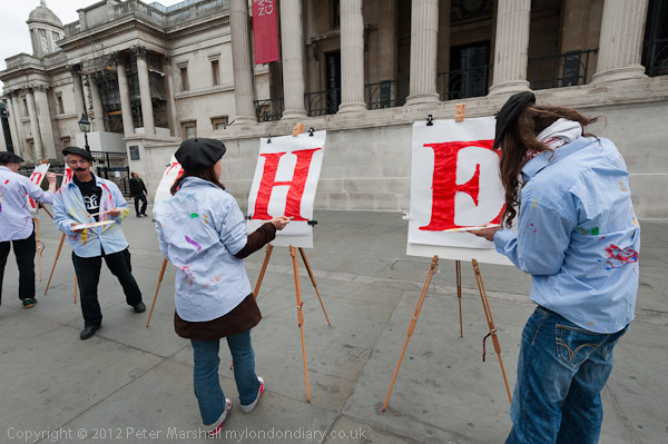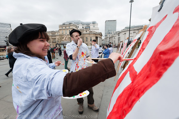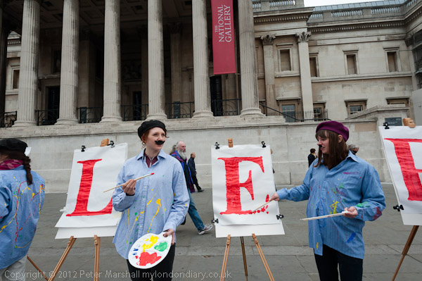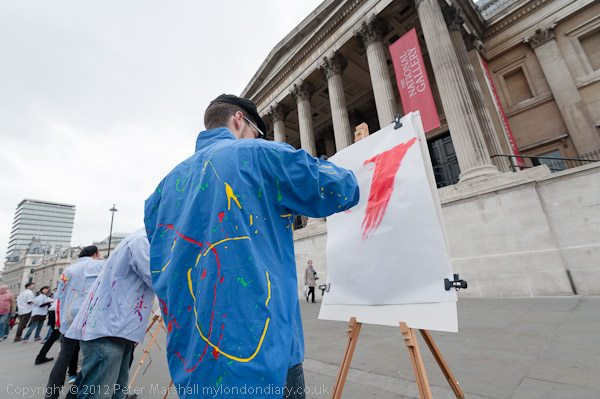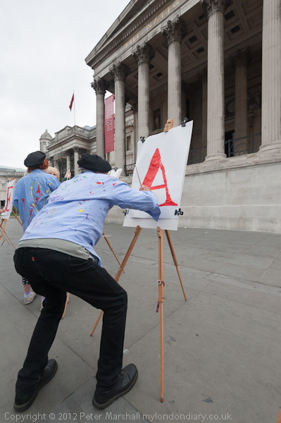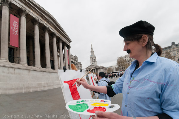 The painters continued outside the gallery, which had closed its main entrance on the portico
