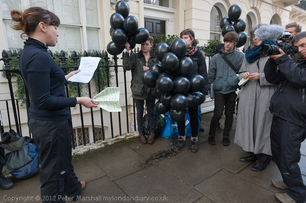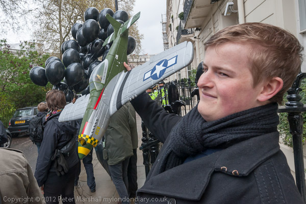 Police tell the protesters they may only protest on the opposite side of the road from the embassy