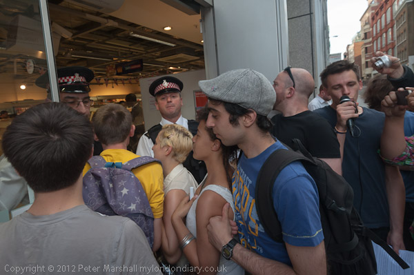 The police arrived soon after a handful of the protesters had made their way into the shop