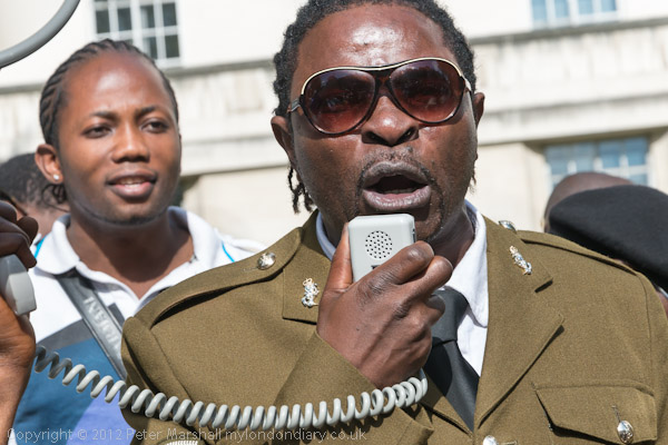 There were perhaps approaching a thousand Sudanese opposite Downing St when I arrived, and they were calling for peace in Sudan where the Sudanese Armed Forces are still carrying out indiscriminate bombing in Southern Kordofan and the Blue Nile states, killing and injuring many and resulting in more than 500,000 fleeing for their lives, including around 150,000 who have sought refuge in Ethiopia and South Sudan. They all want Bashir to go and were calling for the setting up of democracy and for the release of all political prisoners.