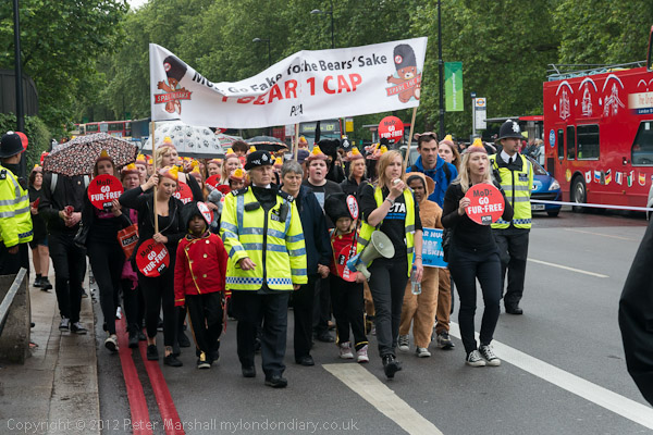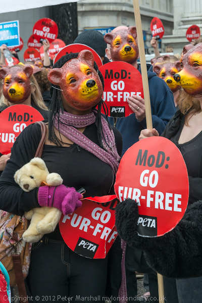 There was a final short photo-call at Marble Arch. Many marchers had brought their own teddy bears with them and worn black as PETA requested