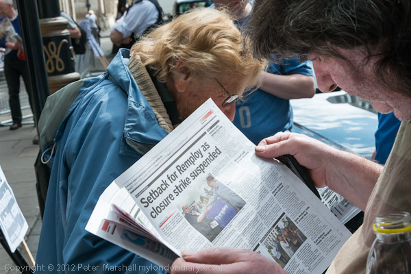 Protesters read the Socialist Worker post against the Remploy trade unions