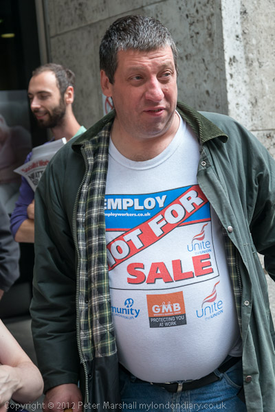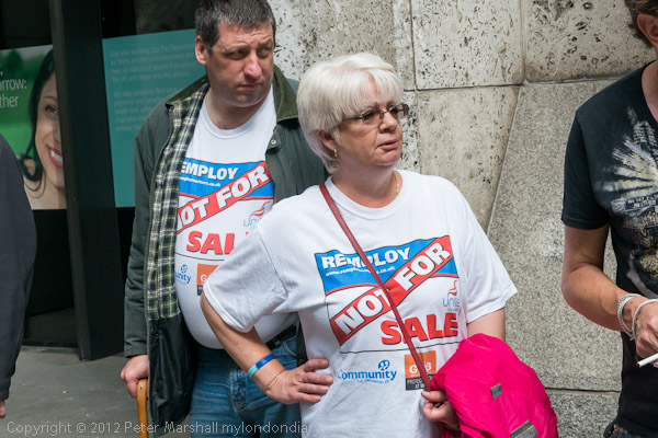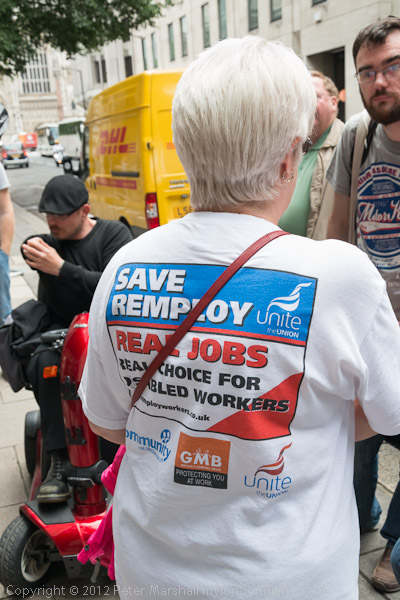 The protest is against the Dept of Work and Pensions and their plans to close Remploy factories