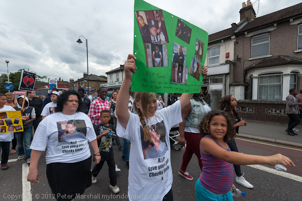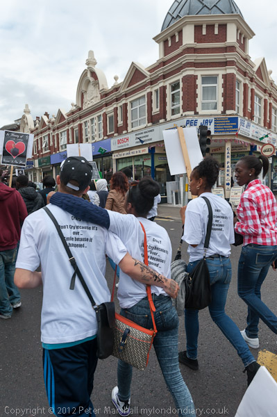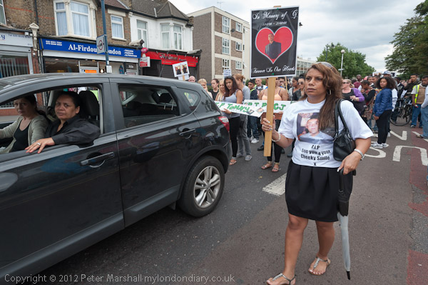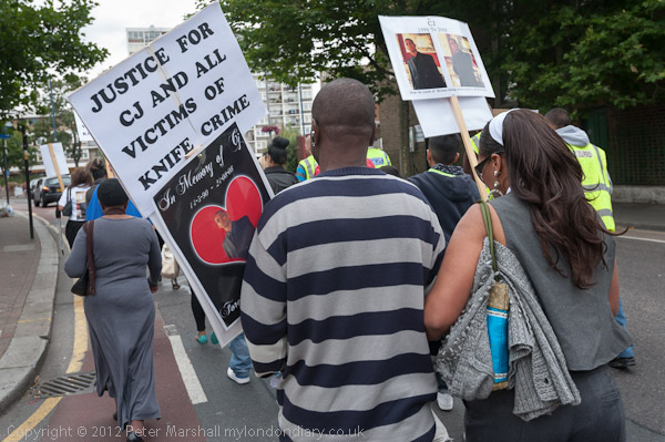 CJ's mother was in the car, and one of the march organisers walking alongside it
