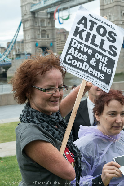People gather for the opening of the Atos Games next to Tower Bridge