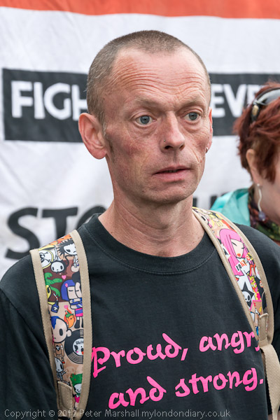 Clare Glasman with a poster calling for Justice for Daniel Roque Hall whose treatment by Wormwood Scrubs put him in intensive care