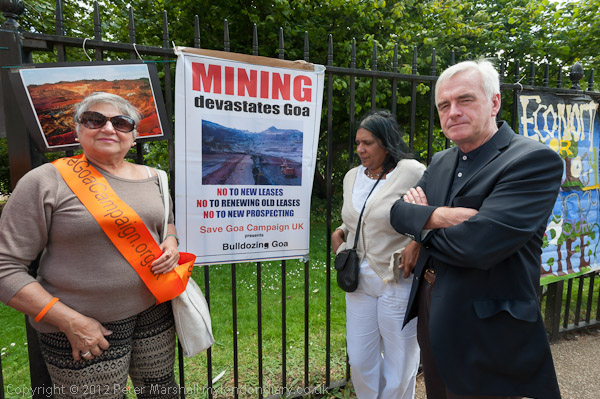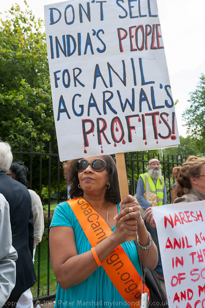 A Goa campaigner with placard 'Don't sell India's people for Anil Agarwal's Profits!'