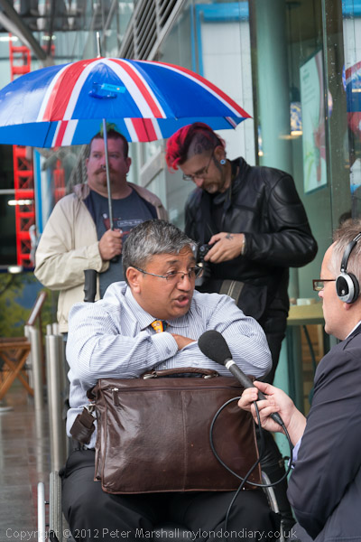A placard lists some of the ridiculous cases were Atos tests found disabled people fit for work