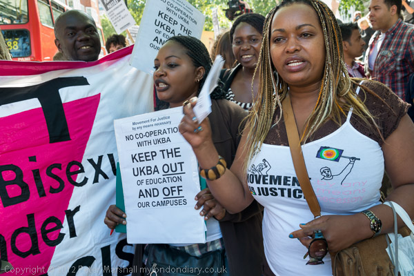 London Met is taking the decision to the courts and their case is expected to be heard next week. Speakers called for people to demonstrate their support outside the court and for there to be further large demonstrations when students return to universities around the country at the start of October. There was also a call for practical support for overseas students in need of accommodation and should any attempts be made to deport them. The protest more or less came to an end when one of the overseas students led a chorus of 'Solidarity Forever...' Many of the hundred or so had drifted away back to work at the end of their lunch break and I too left.