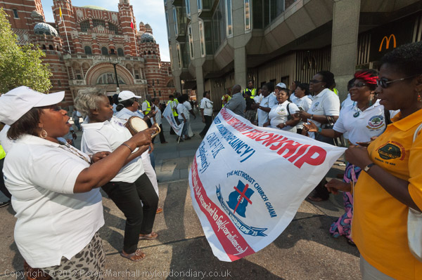 Celebrations of 10 years of the Ghanaian Methodist Fellowship UK and its 16 churches end in a thanksgiving service this weekend. The day before they went to Westminster Catholic Cathedral and then danced away towards Methodist Central Hall.