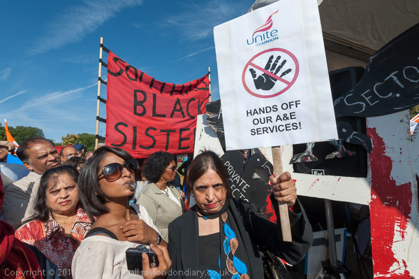 Almost 2000 marchers met at Southall Park to march to a rally in Ealing against the closure of A&E and other departments at Ealing, Central Middlesex, Charing Cross and Hammersmith hospitals. Another march was going to the rally from Acton.