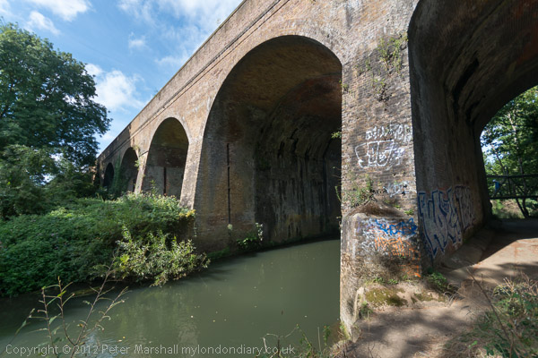 The bridge carries the main line from Waterloo to the southwest over the River Wey