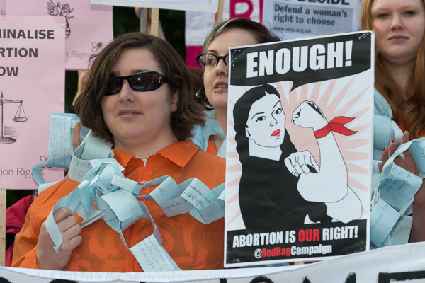 There were a number of speakers, including a woman from an organisation that helps women from Northern Ireland where abortion is still illegal - and could lead to truly draconian penalities, even life imprisonment - to come to the UK and have abortions. Coming here is difficult - the women could be arrested for doing so - and also expensive, as women resident in Northern Ireland cannot get a NHS abortion but have to use private clinics.
