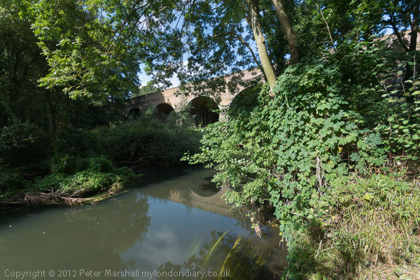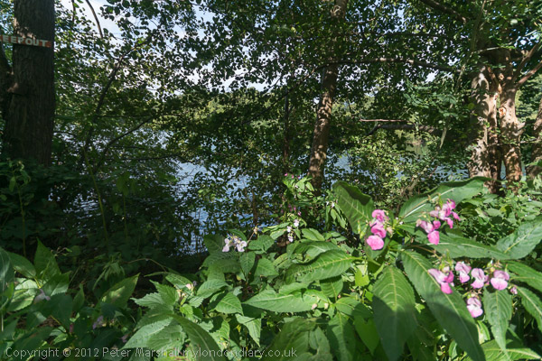 ![]() The Weybridge viaduct on the London & Southampton Railway was built around 1837 and goes over the River Wey ![]() ![]() The River Wey just to the north of Brooklands ![]() Invasive Himalayan balsam (Impatiens glandulifera) is a colourful and attractive weed, but speads ![]() There are several areas of disused gravel workings around the area ![]() |