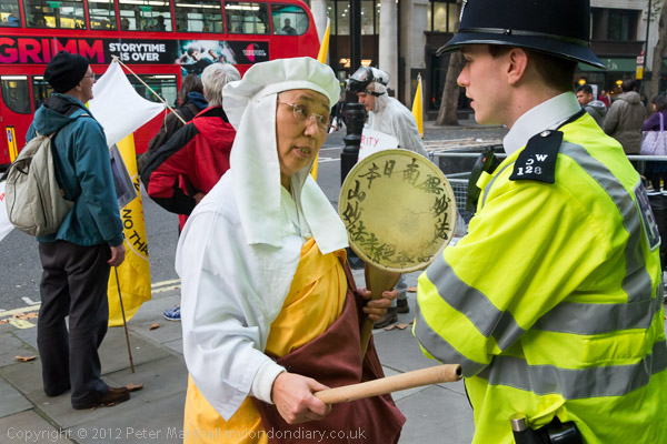 Japanese protesters also take part in the weekly protests outside the Japanese embassy against Fukushima