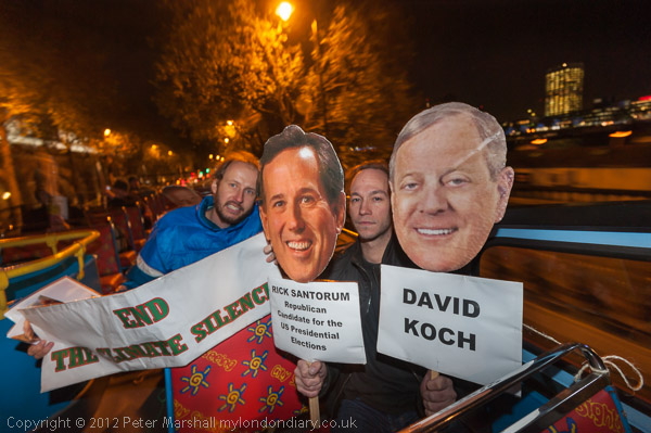 The protest took place on the day that Energy Secretary, Ed Davey, was to introduce the Energy Bill to Parliament, although it was somewhat overshadowed by the publication of the report of the Leveson inquiry.