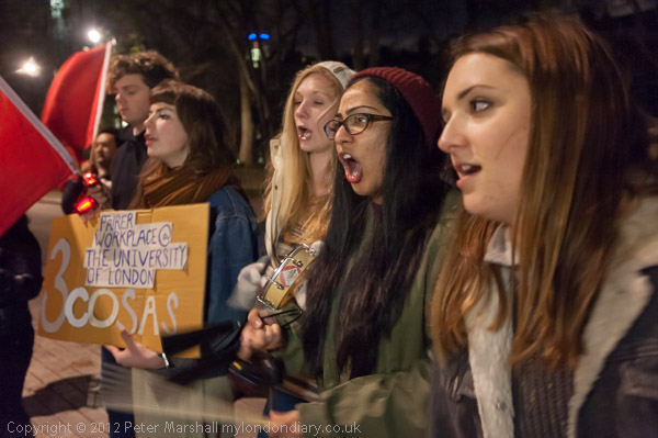 The 3 Cosas Campaign for sick pay, holiday pay and pensions led by the Unison branch is supported by the cleaners' union, the IWGB, who were prominent in today's protest, as well as by students and academics. They have received messages of support from the University of London Union as well as from Green Party leader Natalie Bennett.