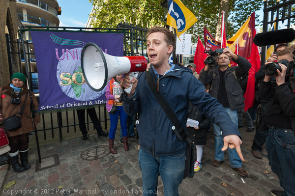 Owen Jones speaking at the protest