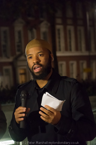 The rally began with speakers including Hamja Ahsan (Free Talha Campaign)