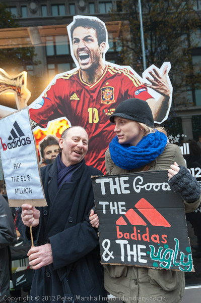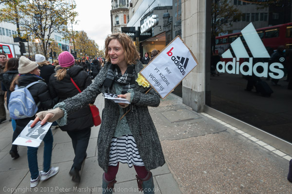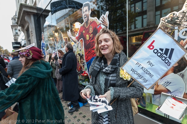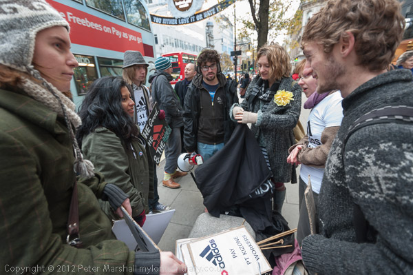Getting ready for the protest outside Adidas on Oxford St