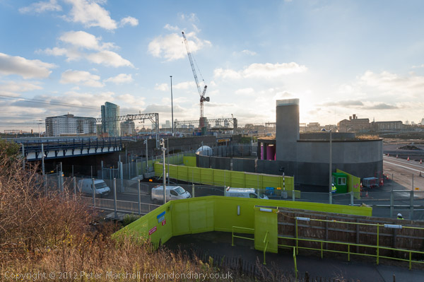 Crossrail works and fences on Pudding Mill Lane