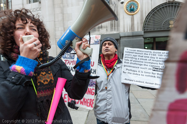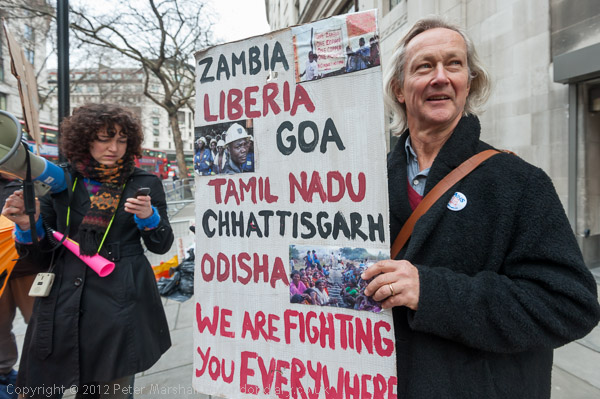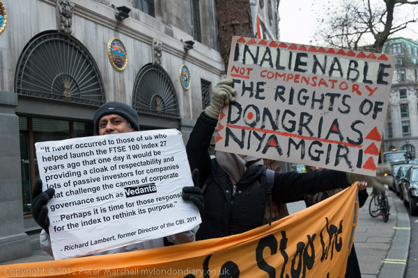 'Vedanta plc Stop the Killlings! Stop the Destruction' banner outside India House