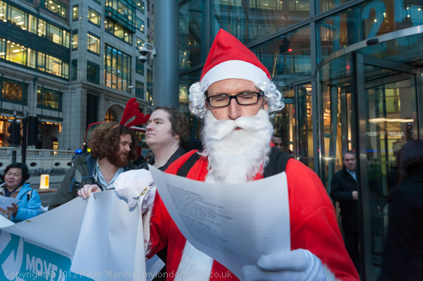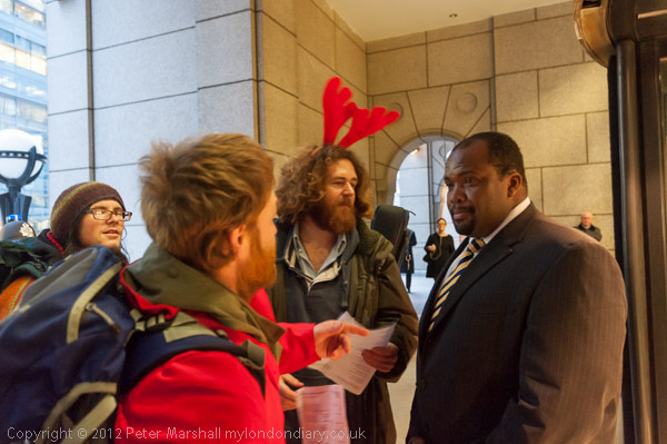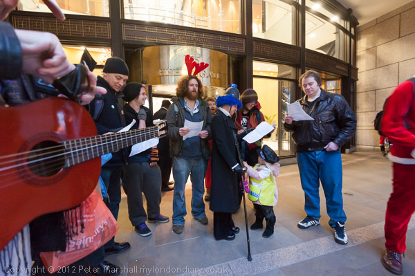 The along to sing a carol to the bankers at 125 Bishopsgate