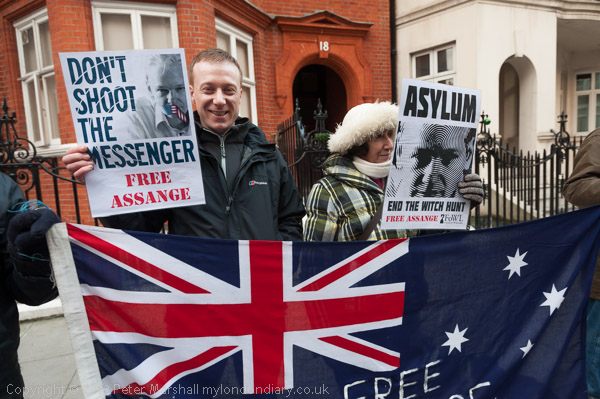vigil it organises every afternoon outside the Ecuadorian embassy were Assange
