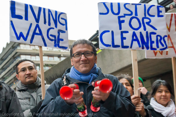 The protest was organised by the Industrial Workers of Great Britain (IWGB), the independent general union which represents cleaners and which declared an official dispute at the Barbican last November and has since held several protests.