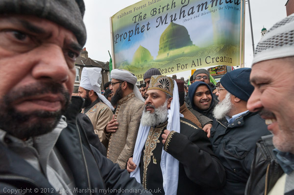 Several thousand Muslims marched around Walthamstow to mark Milad Un Nabi, the anniversary of the birth (and the death) of the Prophed Muhammad and to celebrate his message of peace.