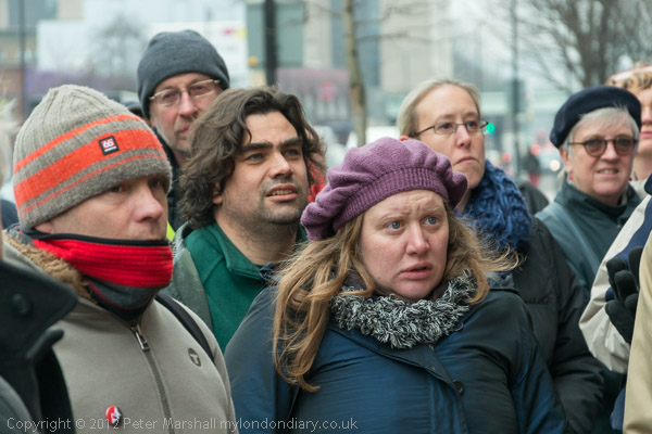 Several people spoke, including one of the leaders of the Barbican cleaners, who as well as speaking about the low wages and poor working conditions, and the feeling by cleaners that they are treated like dirt rather than given the respect due to any person, told how his pregnant wife had been forced to work with chemicals that were known to be dangerous for pregnant women, risking a miscarriage, despite her complaints. MITIE had failed to discipline the manager responsible in any way. Fortunately despite the exposure, his wife had given birth to a healthy child.
