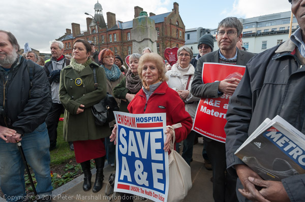 The well-attended rally was chaired by Louise Irvine, the Chair of Save Lewisham Hospital Campaign and speakers included Lewisham Mayor Sir Steve Bullock, hospital staff, trades unionists from Unison, Unite, NUT, FBU, RMT, patients, pensioners and other campaigners. Many motorists passing beeped their horns in support and bus passengers waved.