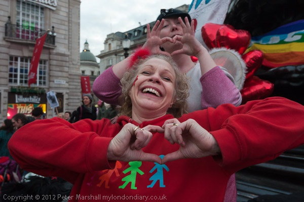 The 11th Reclaim Love free Valentine's Party - and the 10th organised by Venus CuMara who started the whole thing in 2003 - took place around Eros in Piccadilly Circus, aiming to spread peace and love around the world, and to reclaim love from its commercial exploitation.