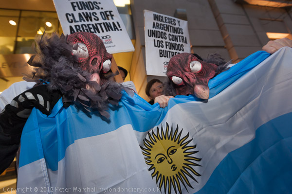 A noisy London 'Claws off Argentina' protest outside the offices of 'vulture fund' Elliot Associates by Jubilee Debt Campaign on eve of New York appeal called on them to stop their attack on Argentina and drop the $1.2billion claim.