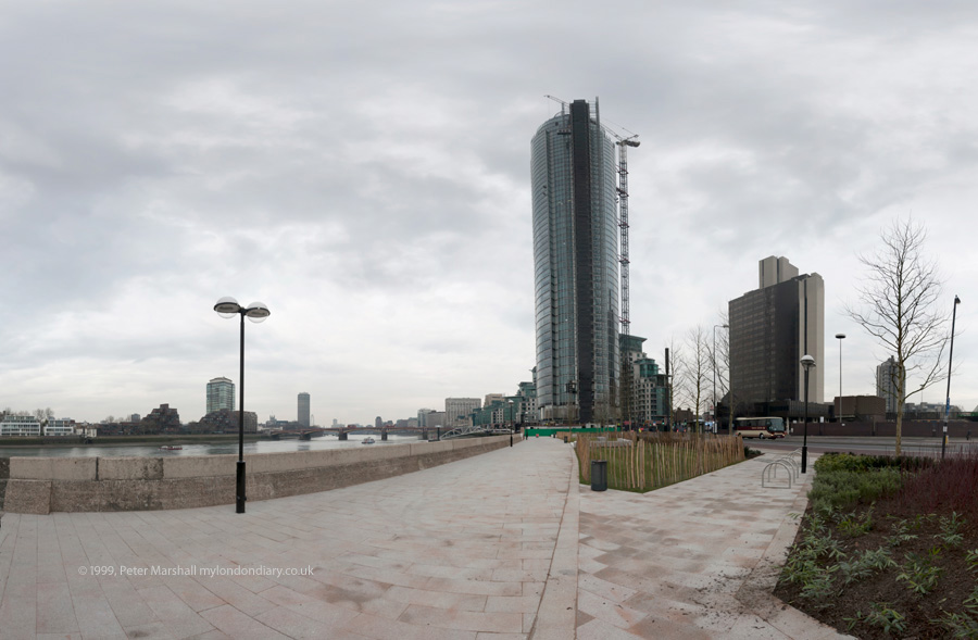Vauxhall, 2013 - 180 degree digital panorama, stitched from 2 rows of 6 images. Even with the 16mm lens in portrait format the tower was too tall for a single row