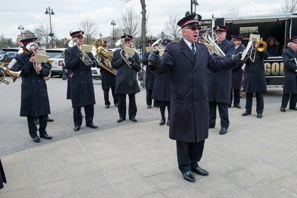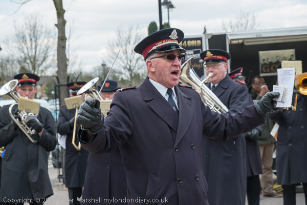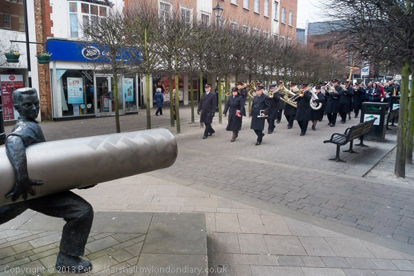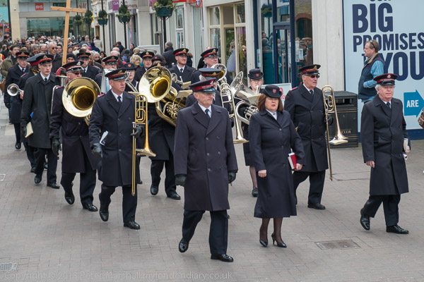 The Salvation Army band leads the procession onto Thames St