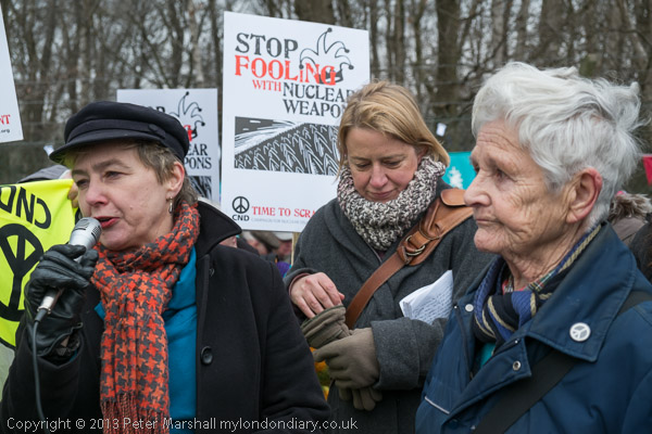 Kate Hudson introduces Pat Arrowsmith, with Natalie Bennett behind them