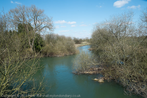 The view downstream from the footbridge where we joined the Thames path
