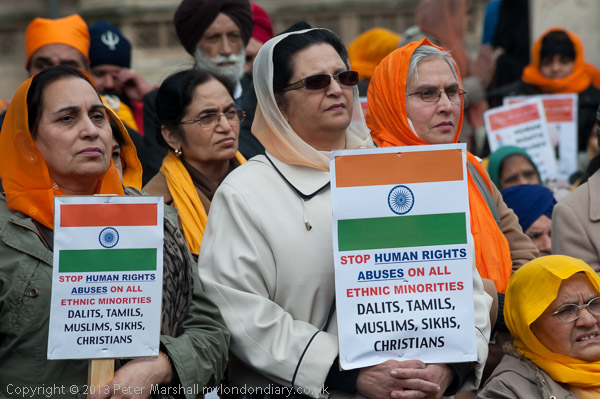 Placards with the Indian flag and a call to stop human rights abuses on all ethnic minorites