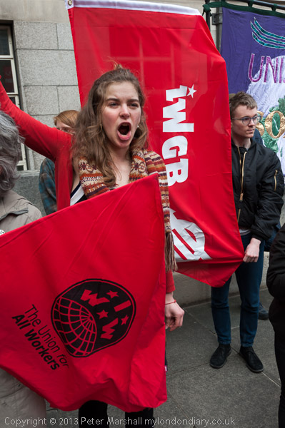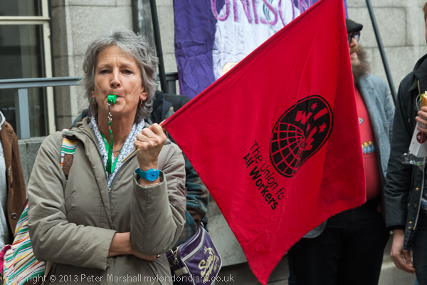 The cleaners and other workers and supporters, including students and trade unionists met in the Senate House car park