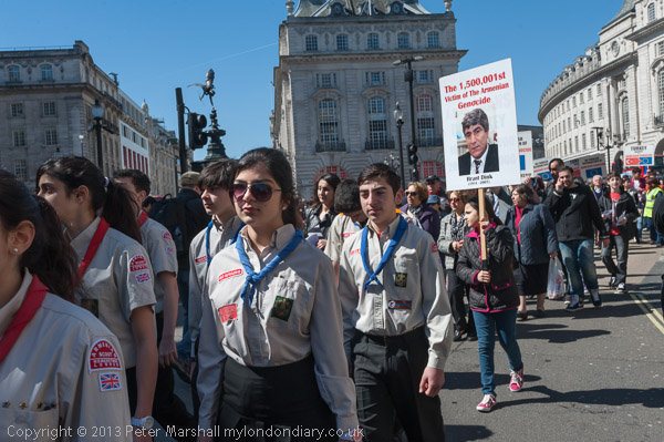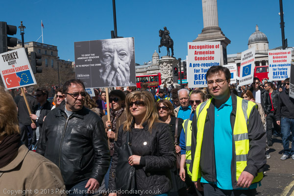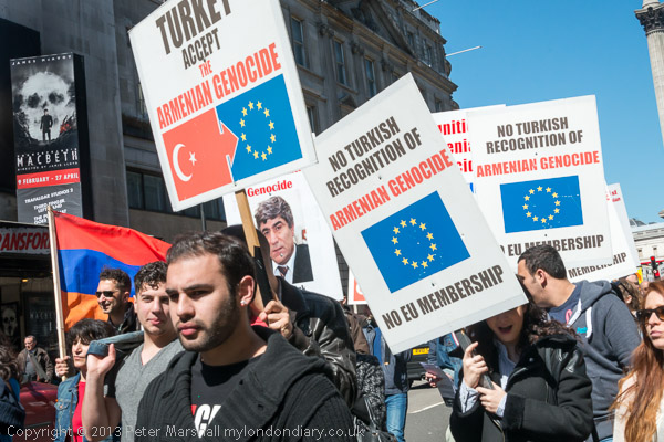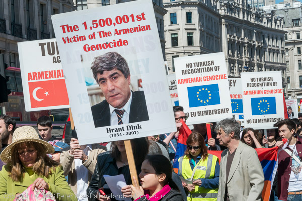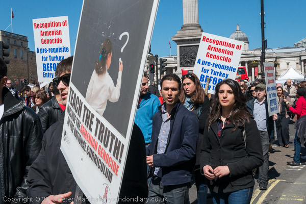 followed by the people with placards about the Armenian Genocide