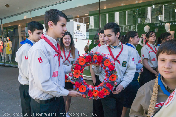 the rest of the scouts behind the wreaths