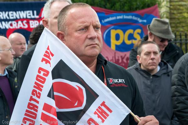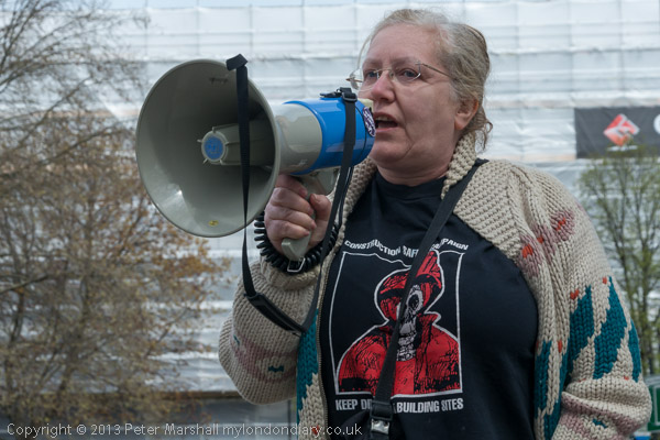 ![]() Les McCluskey, General Secretary of Unite, was the first speaker ![]() ![]() ![]() ![]() Les McCluskey speaking under the statue of the worker on Tower Hill ![]() ![]() A Hazards magazine shirt - 'We didn't vote to die at work' ![]() Margaret Sharkey of the London Hazards Centre speaking |