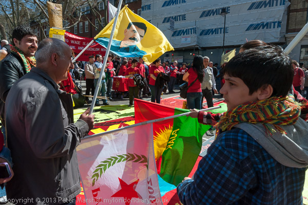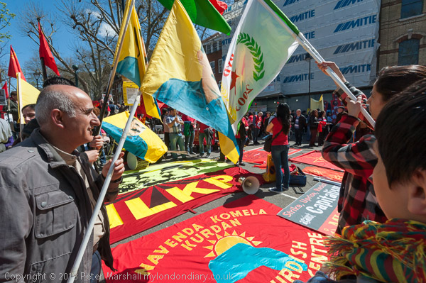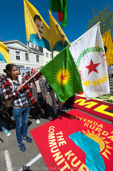 Kurdish Workers party (PKK), Syrian Kurdish Democratic Union Party (PYD) flags and Abdullah Ocalan flags