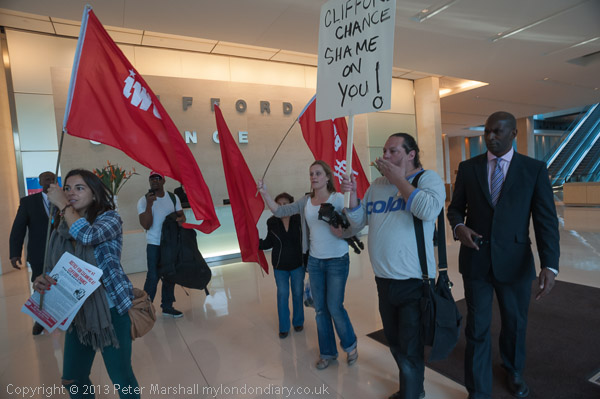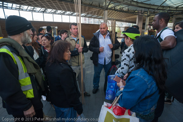 Protesters are brieged by Alberto Durango at Canada Water
