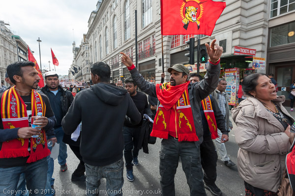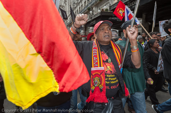 One of the few Tamil Democrat flags in the traditional colours of Tamil Eelam. Most preferred the Tiger flag