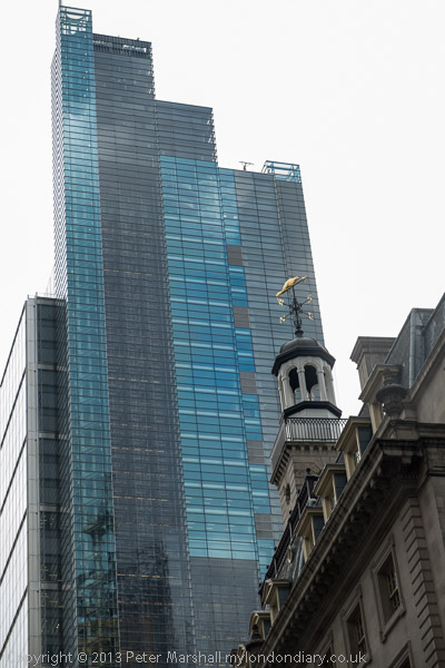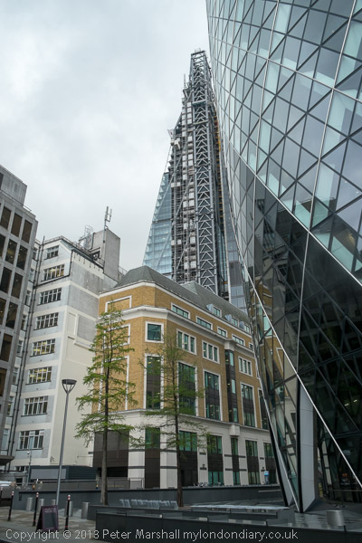 The Cheesegrater still under construction - and at right, the Heron Tower