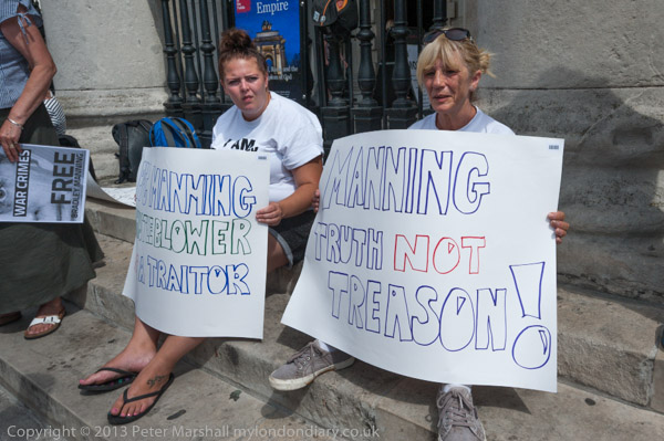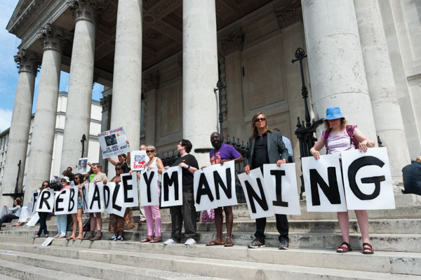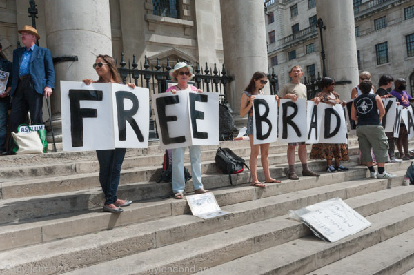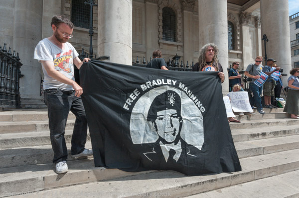 Bradley Manning Support Network International Day of Action - in London a vigil on the steps of